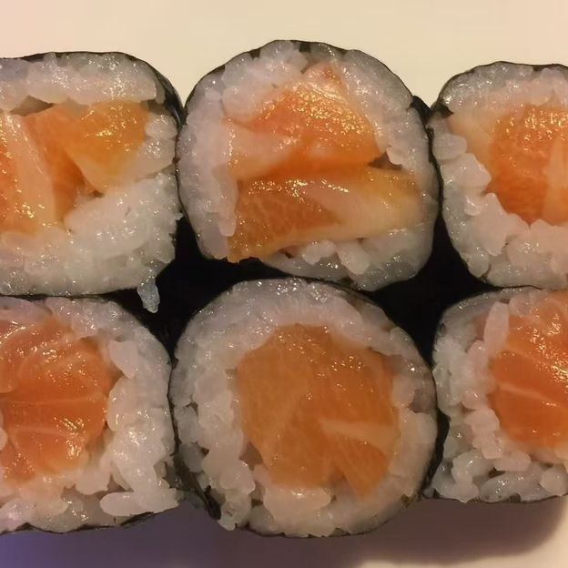 Salmon, spicy salmon, mango, edamame, sweet corn, cherry tomato, cucumber, red cabbage, masago