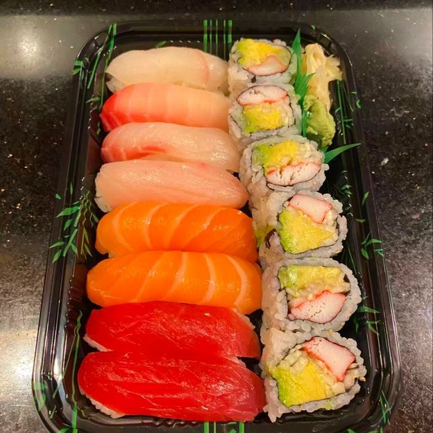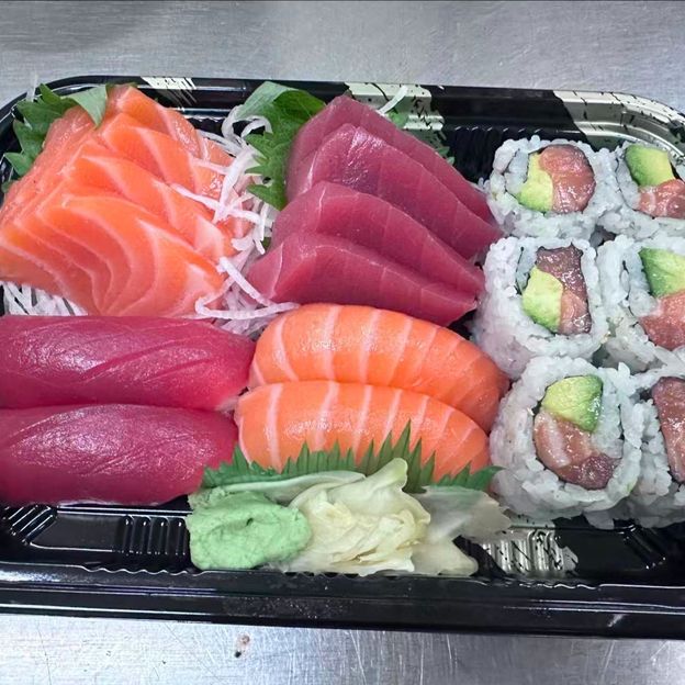 4 pcs Sushi, 6 pcs Sashimi and California Roll
