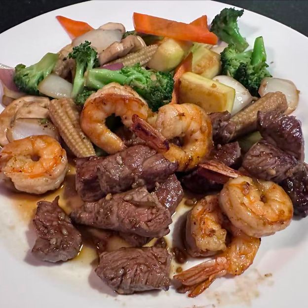 Tuna, cucumber, mango, cherry tomato, seaweed salad, avocado, pickled ginger, sesame oil and roasted seaweed