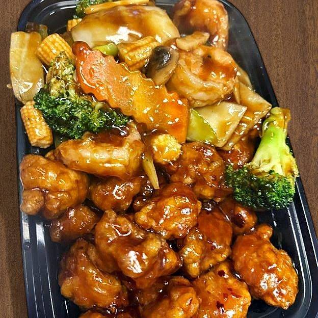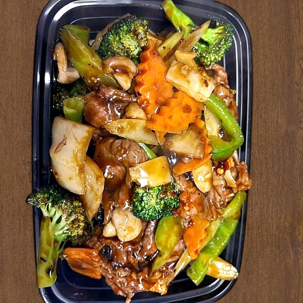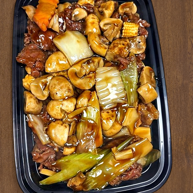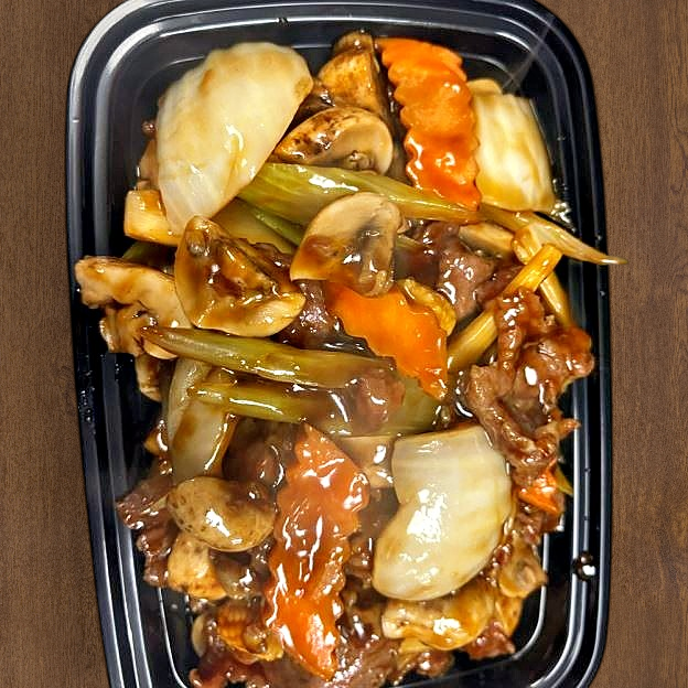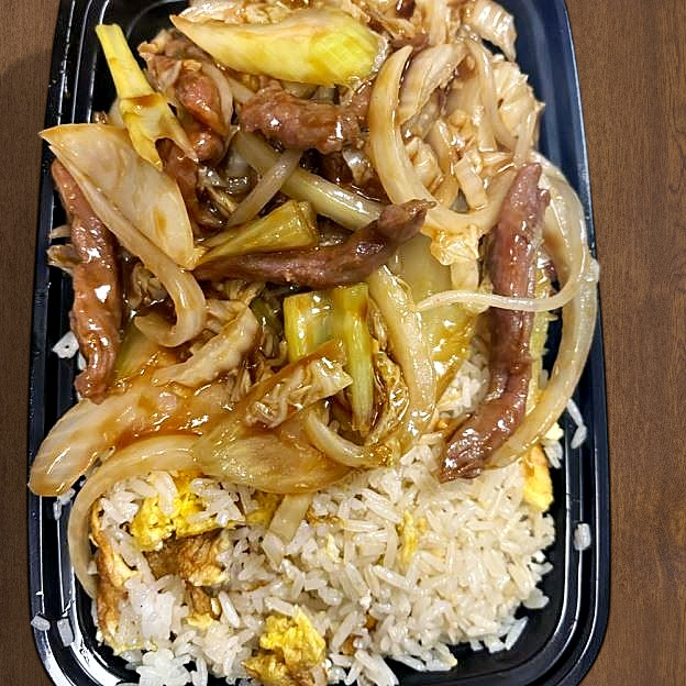 Served with white rice o fried rice free egg roll. Hot and spicy.