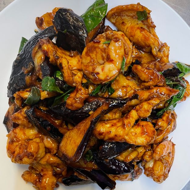 茄子雞蝦 / Basil Eggplants With Chicken & Prawns