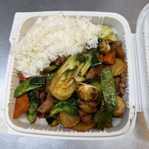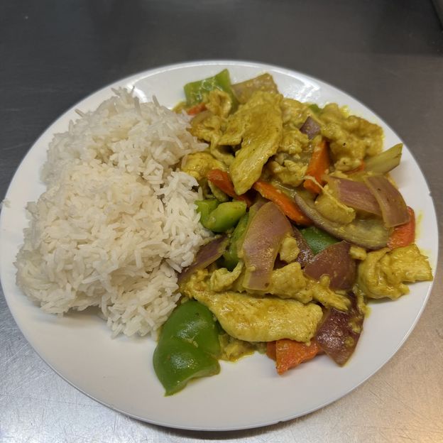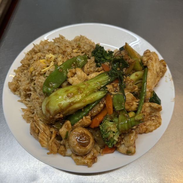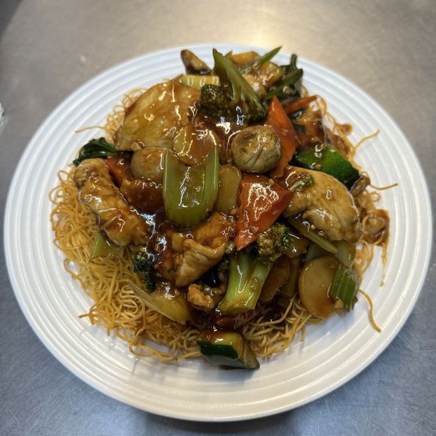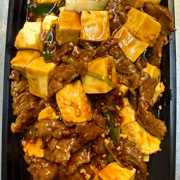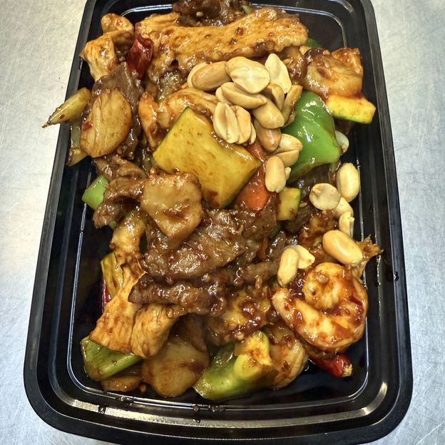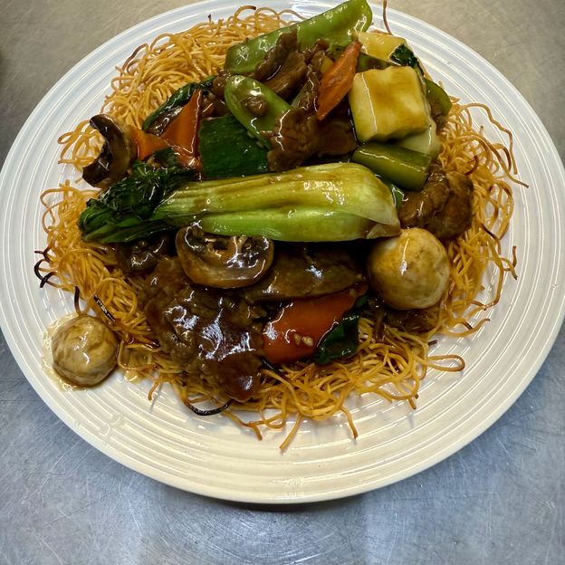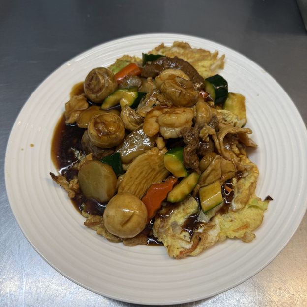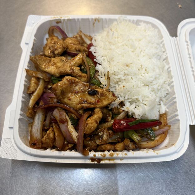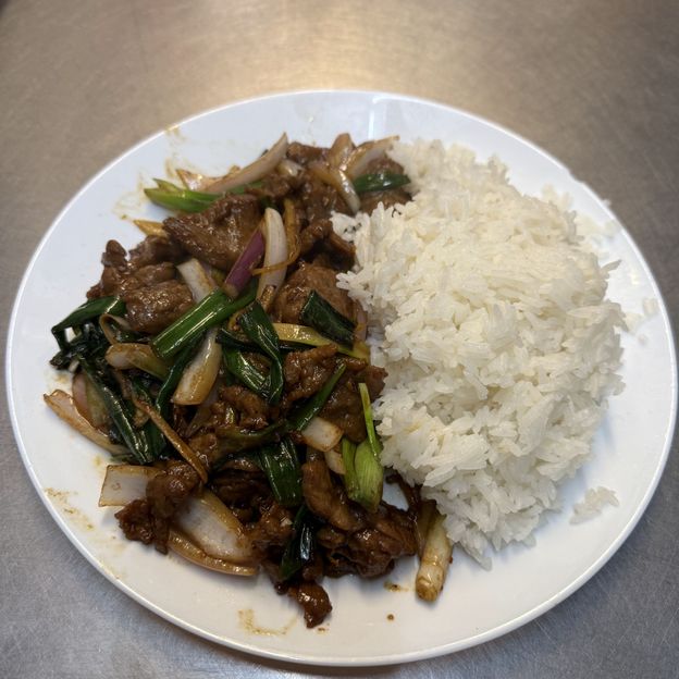 chel's special sauce,cubed tenderloin beef with Snow bean red onion carrot and pepper