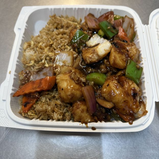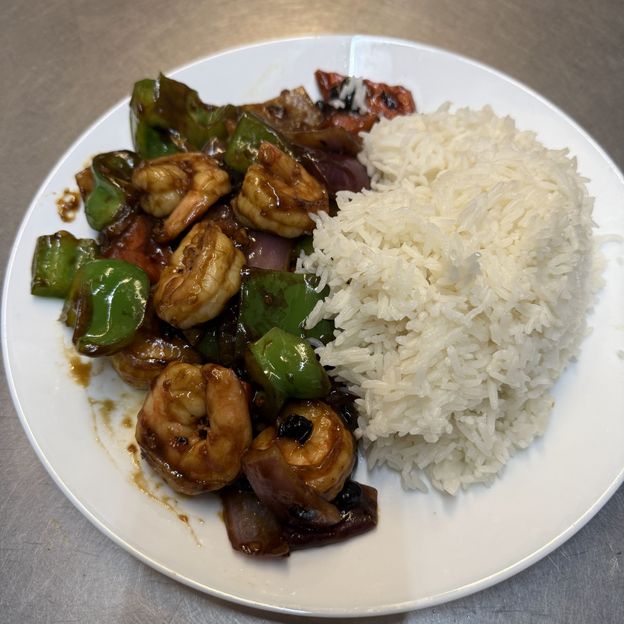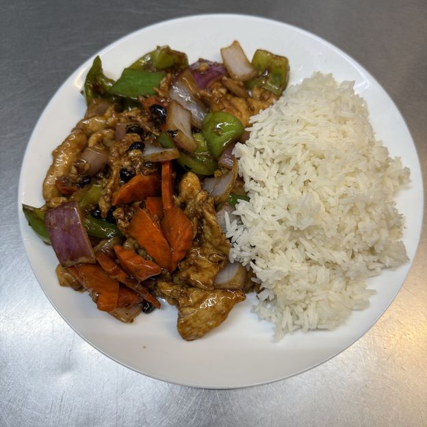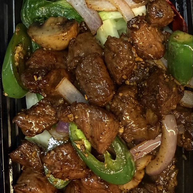 (cubed filet mignon,red onions,jalapeno mushroomn.Black pepper and maggi sauce)