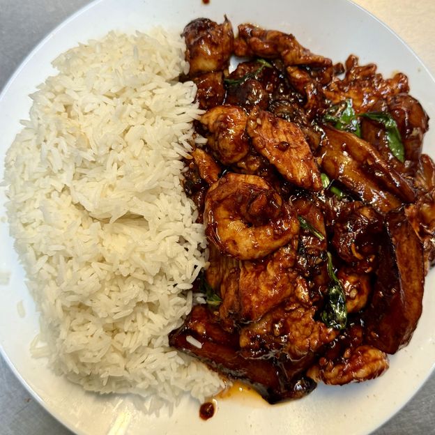 A4 香茄鸡虾 Basil Eggplant w/Chicken And Prawns