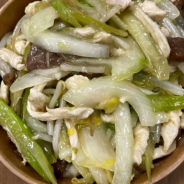 Stir Fried E-noodle with Dried Scallop and Enoki Mushrooms