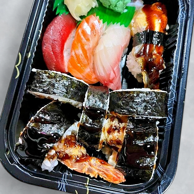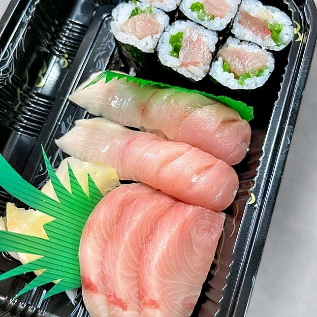 76 pieces. 4 inari sushi, 2 Idaho maki, 2 avo kyu maki, 2 avocado maki, 2 avo mango maki, 2 kappa maki, and 2 oshinko maki.