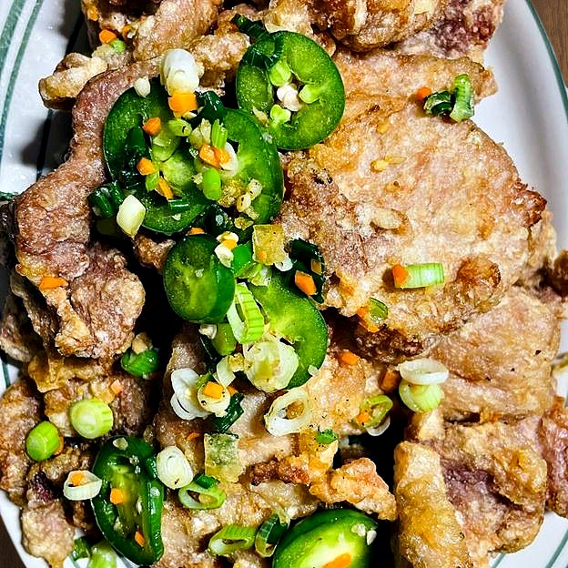 Deep-fried pork chops with jalapeño pepper, green onion. Tossed in house special salt.