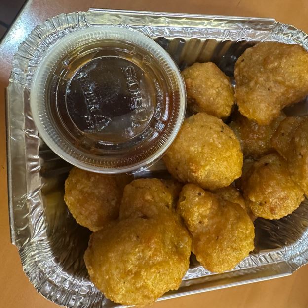 Combination of barbecued spare ribs, cho cho beef, cheese wontons, egg rolls, fried shrimp and chicken wings.