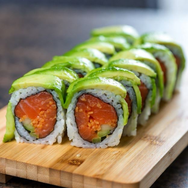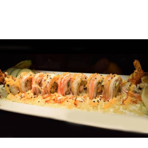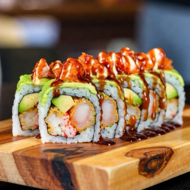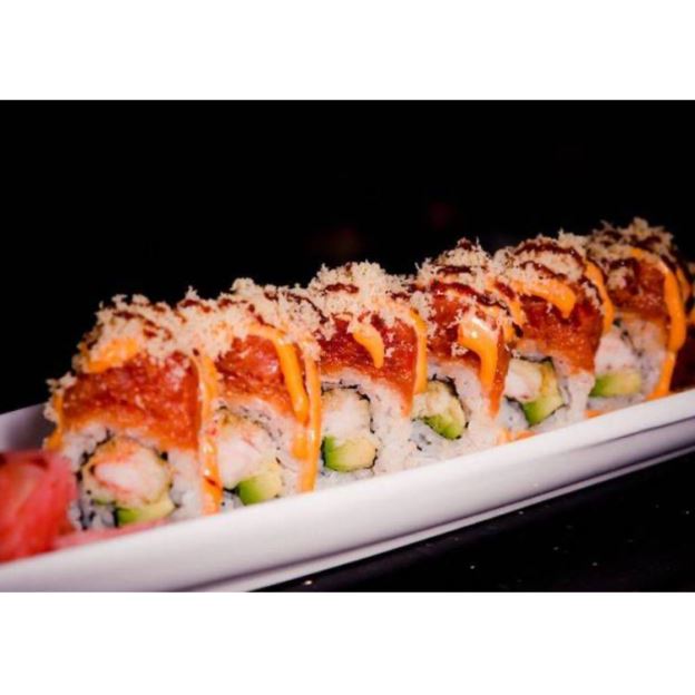 Slice avocado top with spicy crunch tuna , and spicy mayo