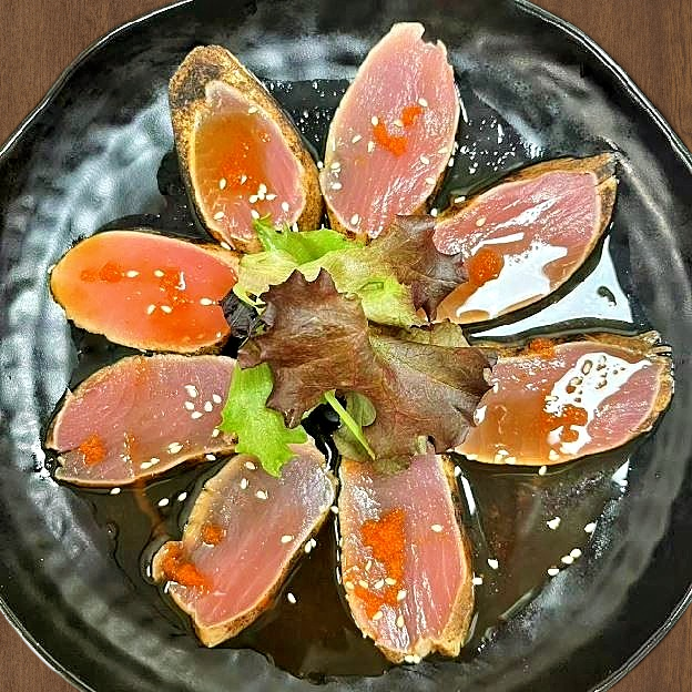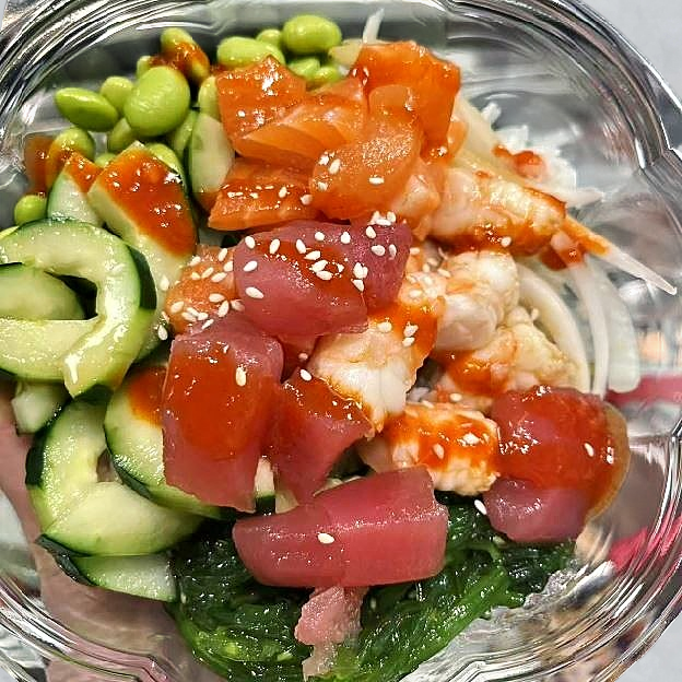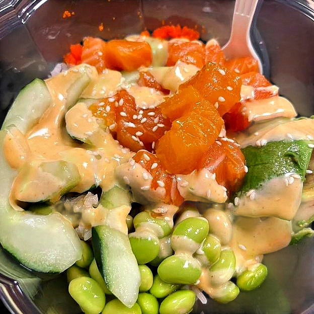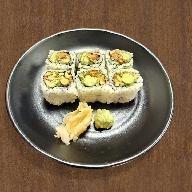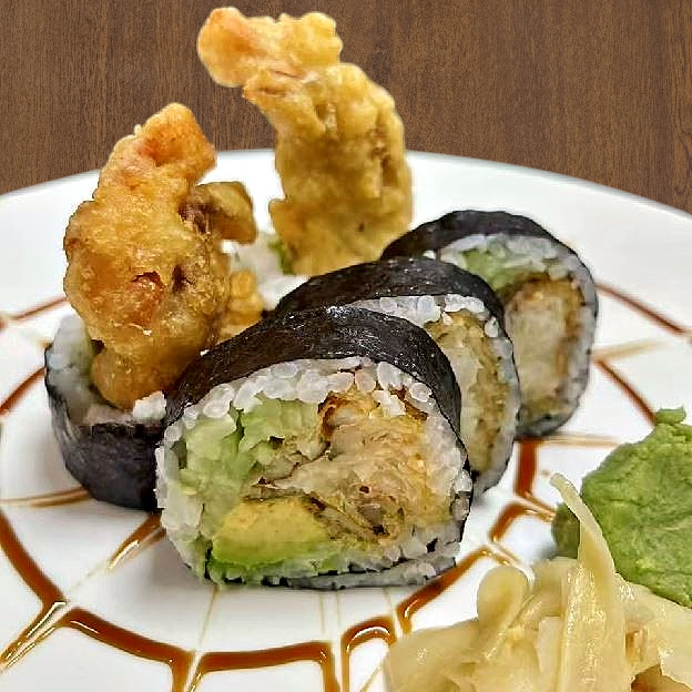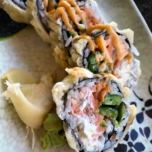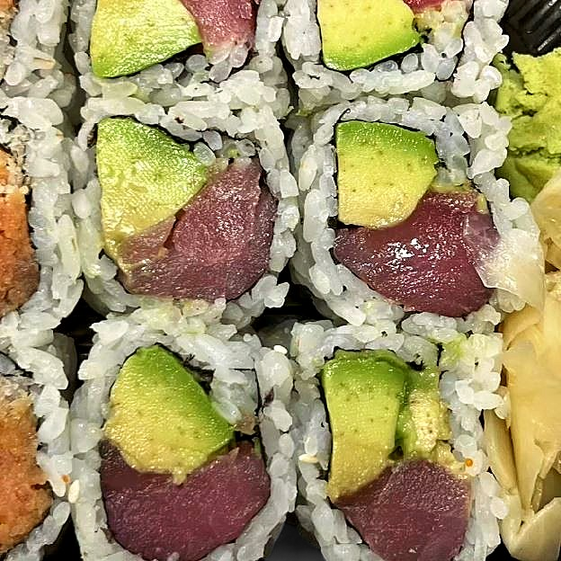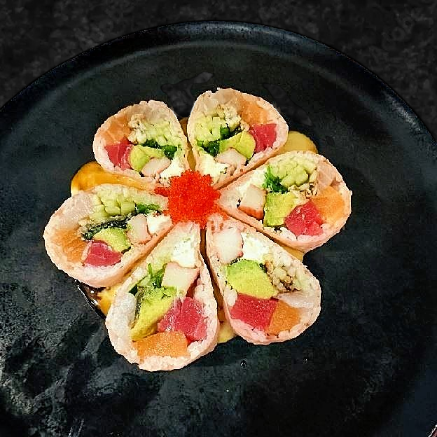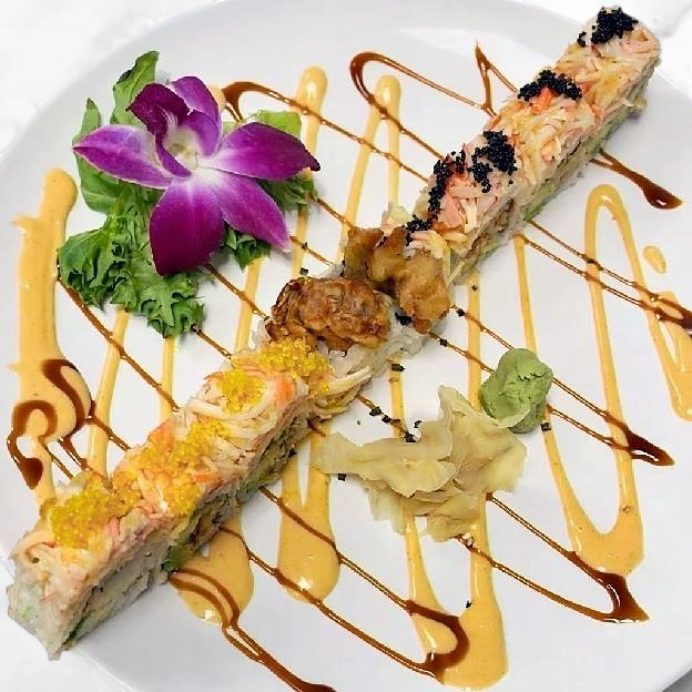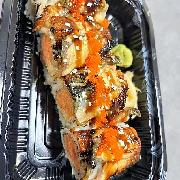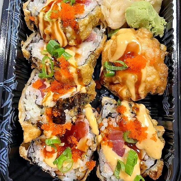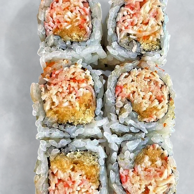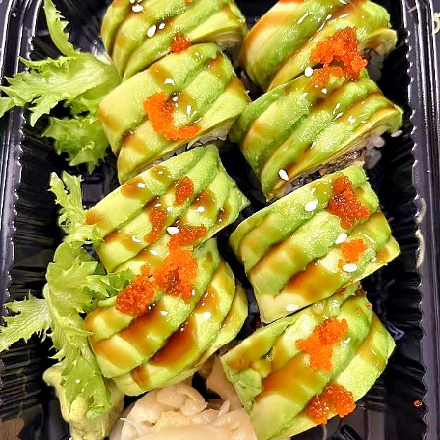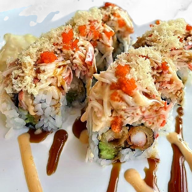Spicy crunch tuna inside, wrapped w.avocado spicy mayo, caviar on top