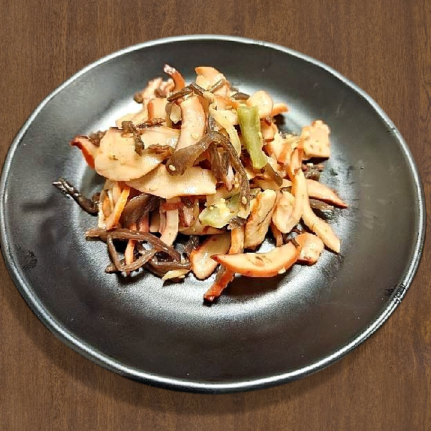 Carrot, mushroom, celery, water chestnut and peanuts in spicy brown sauce