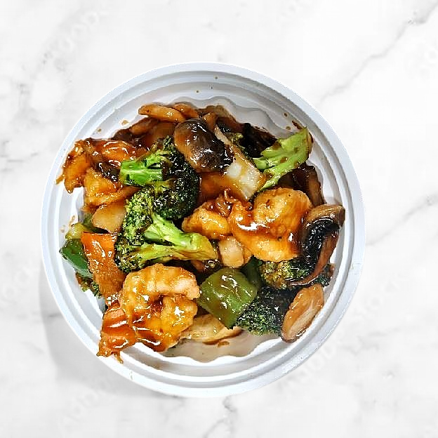 Sauteed w.broccoli, mushroom, carrot in spicy brown sauce