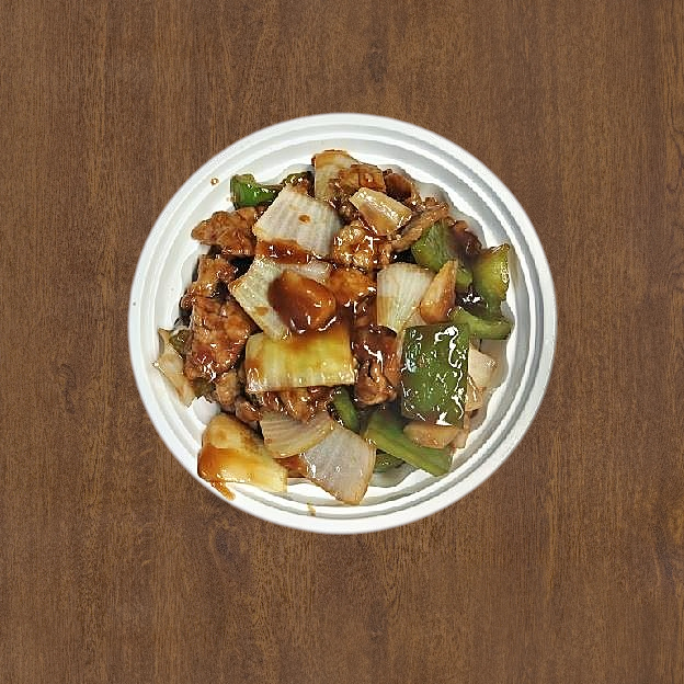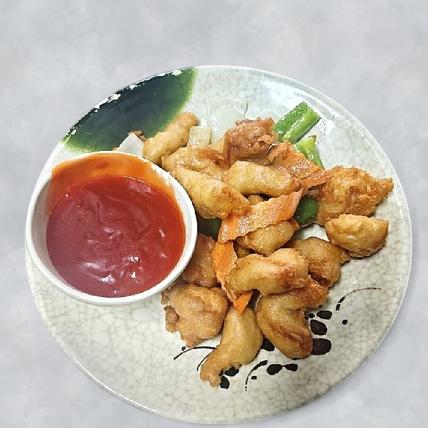 Battered deep fried chicken w.bell peppers, onion and pineapple w.sweet sour sauce