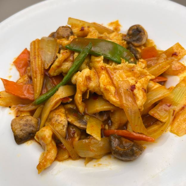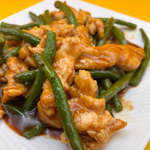 Thin noodles stir fried with vegetable. Choice of chicken, beef or pork.