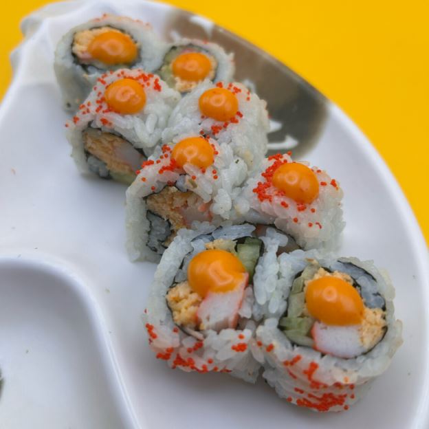 California roll and 5 pieces of nigiri.