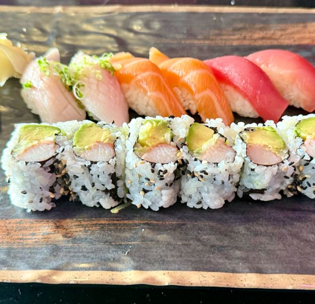 6 pcs Sushi and 1 California Roll.