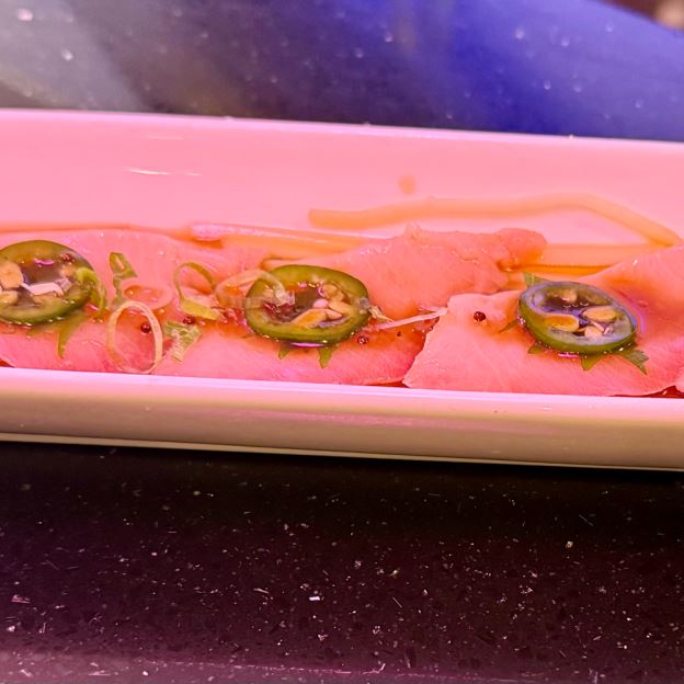 12 pcs Sashimi and 1 California Roll.