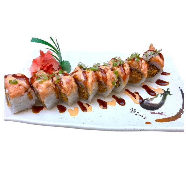 Imitation crab, cucumber, avocado, spicy tuna, masago, scallion