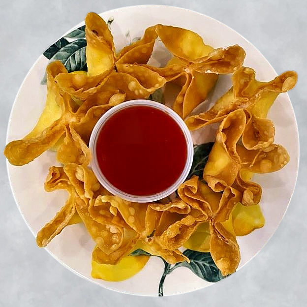 Egg Roll (1), Crab Rangoon(4), Bar-B-Q Spare Ribs (2), Chicken on Stick , Fried Zucchini (2), Crab Stick (4)