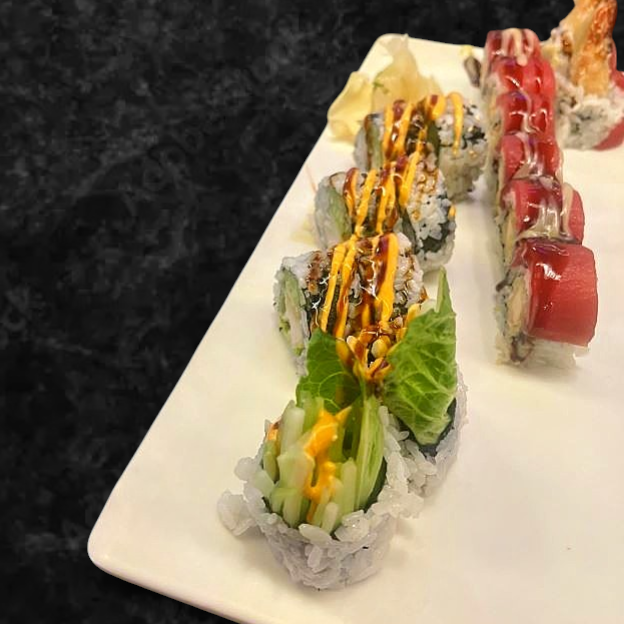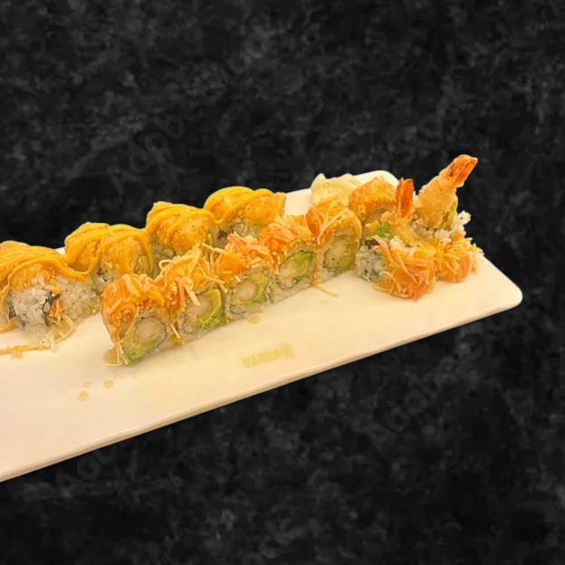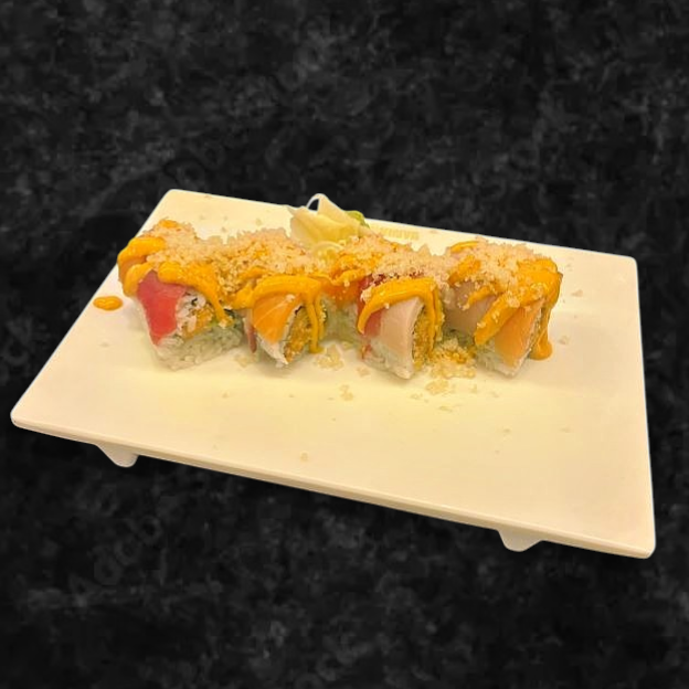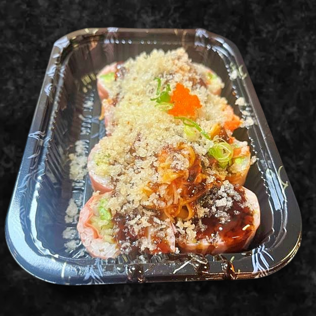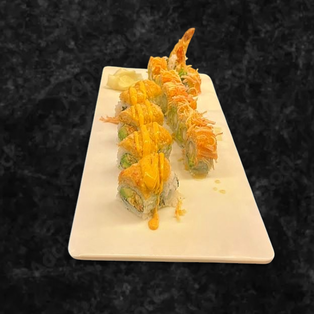 Crabmeat rolled inside of cucumber with fish egg & avocado