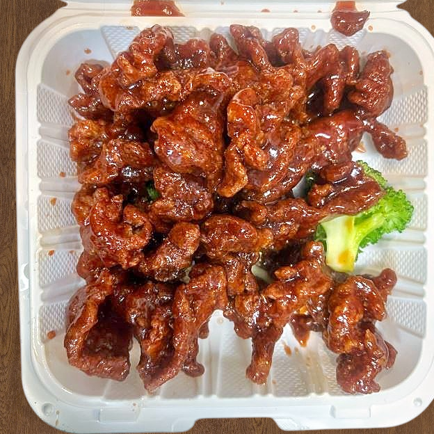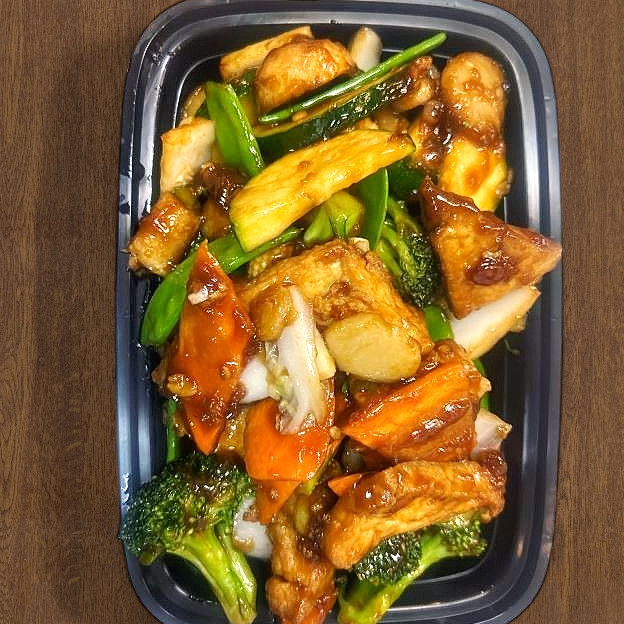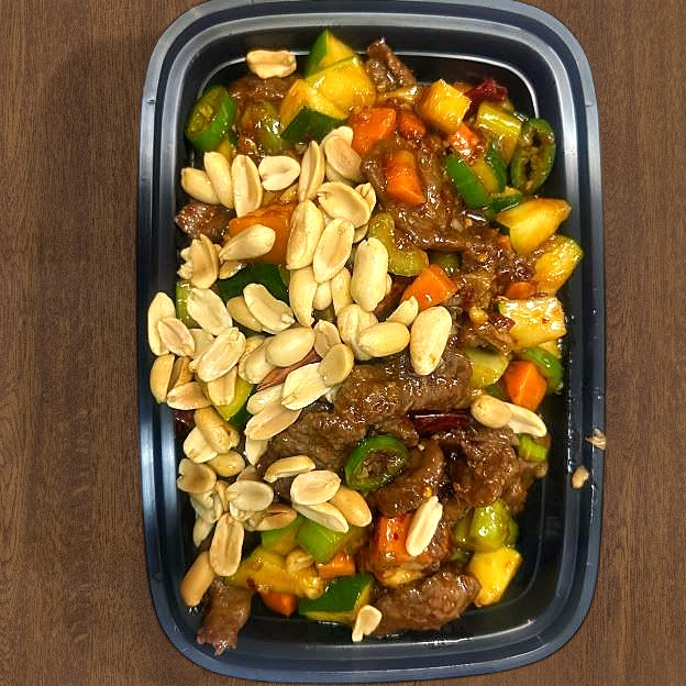 Grilled BBQ pork stir fried with a sweet BBQ sauce.