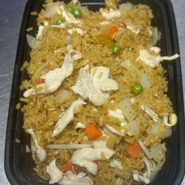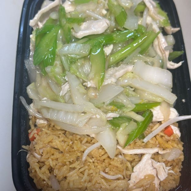 Tender chicken and sautéed mushrooms in a rich, flavorful sauce, served hot and satisfying.
