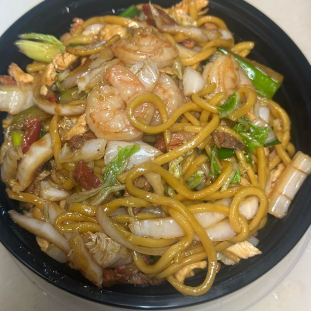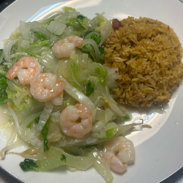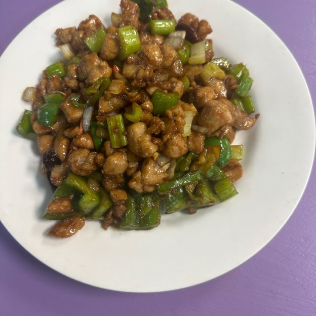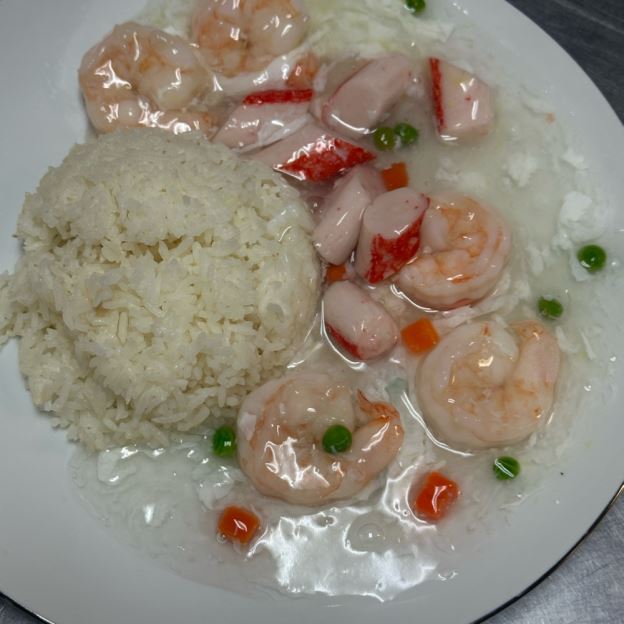 Stir-fried shrimp, cashew nuts, and vegetables in a flavorful sauce.