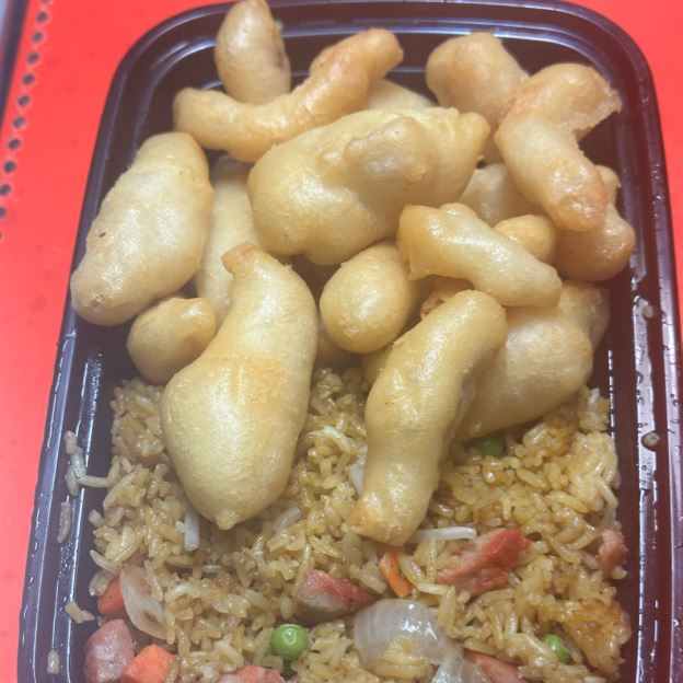 Crispy fried shrimp tossed in a sweet and spicy sauce.