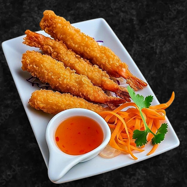 Lightly battered and deep-fried shrimp, served crispy and golden. A perfect appetizer to start your meal—delicate, crunchy, and satisfying.