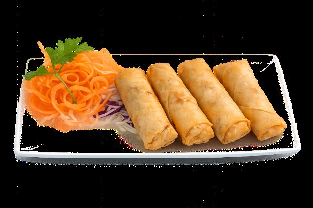 Egg Roll with cabbage, carrots, onions, and glass noodles.