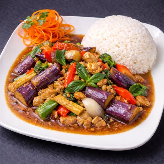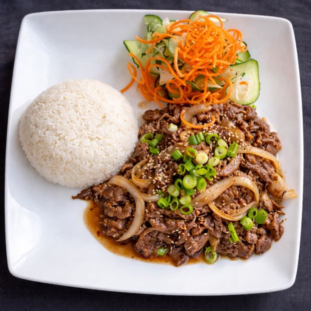 Stir fried choice of meat with broccoli in light brown sauce. Served with steamed rice.