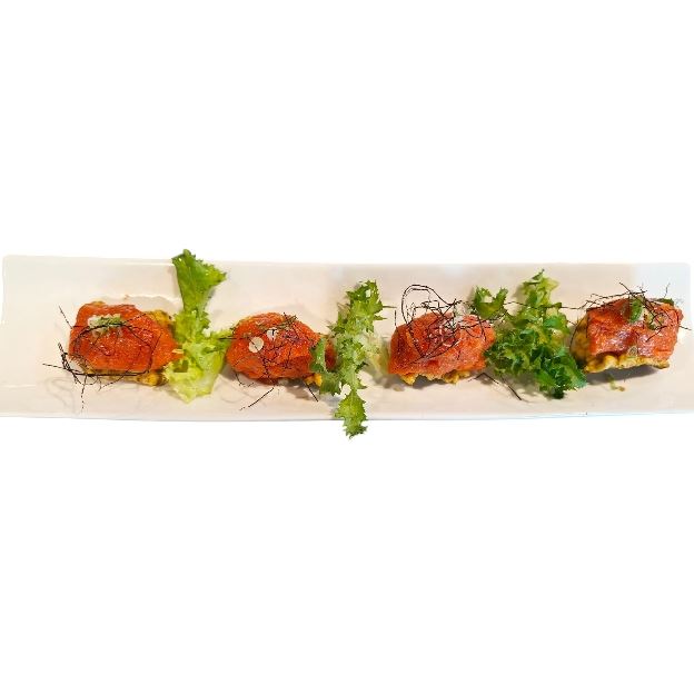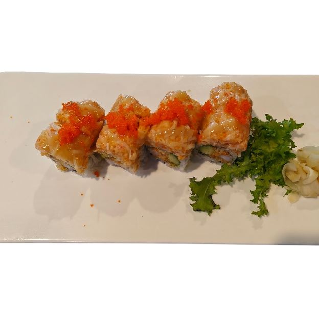 Shredded crabmeat and julienne cucumber tossed in mayo and smelt roe