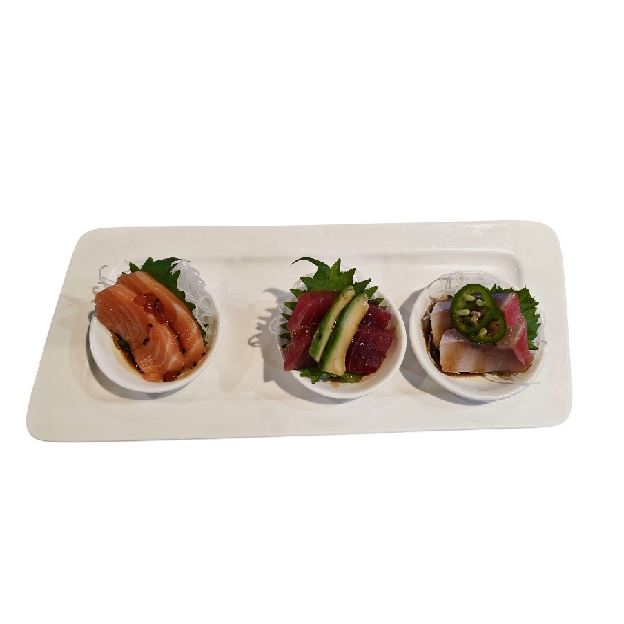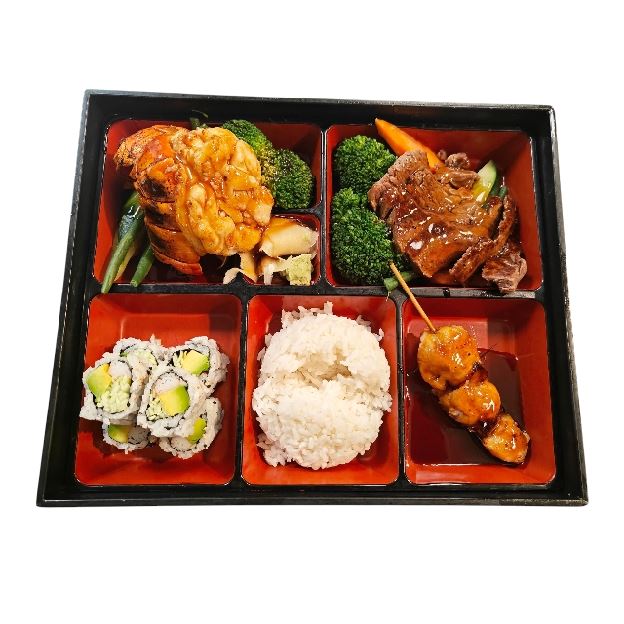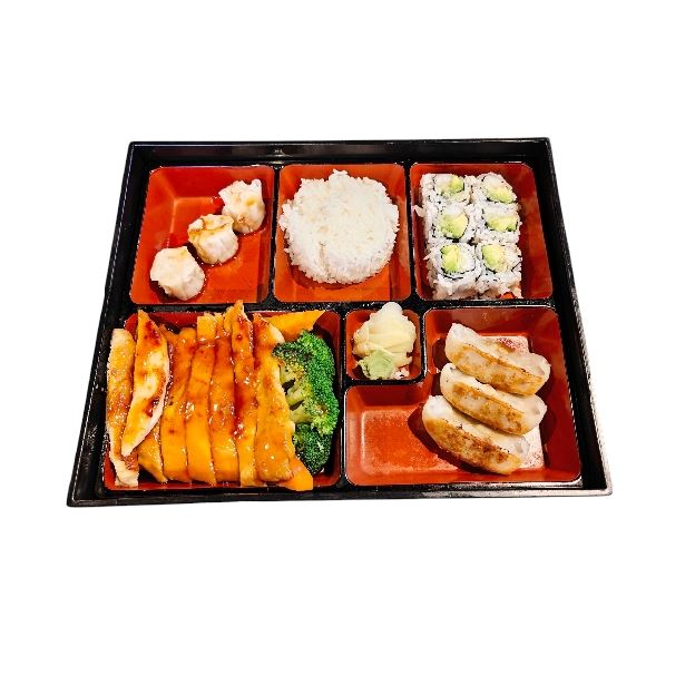 2 pcs sushi, 4 pcs sashimi, chicken teriyaki, shumai