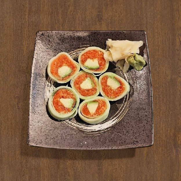 Crabmeat, iceberg, sliced tomato and cucumber w. traditional ginger dressing.