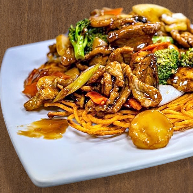 Chicken white meat, shrimp, ham, mushrooms, snow peas in a chicken broth topped with sizzling rice.