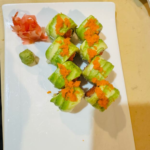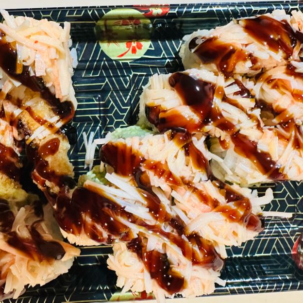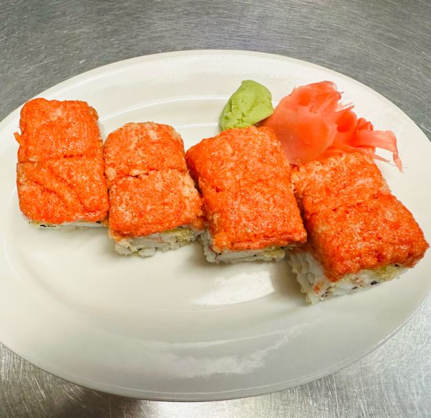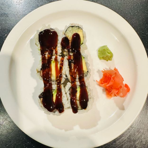 Five pieces of sushi and one roll (any regular roll). Served with miso soup or salad.