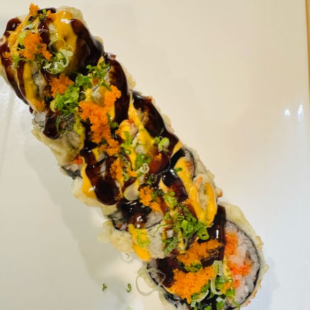 Four pieces sushi and six pieces sashimi and one roll (any regular roll). Served with miso soup or salad.