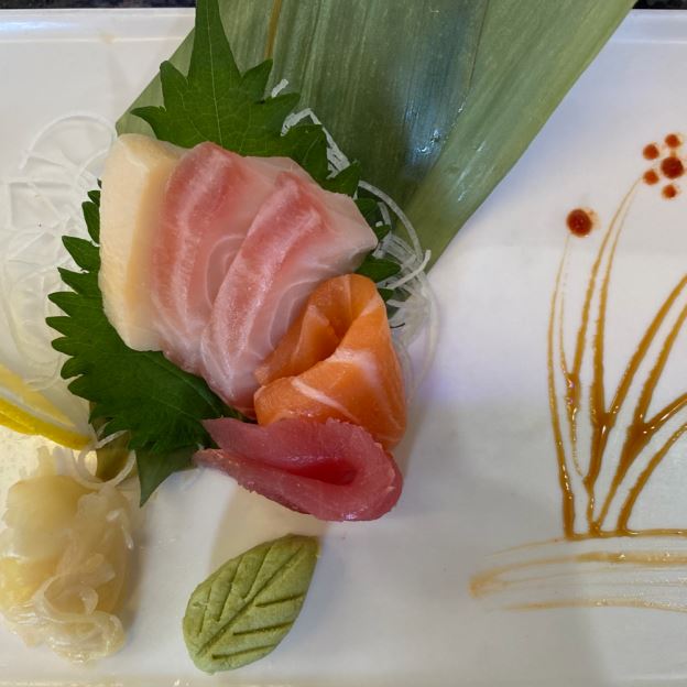 3 pieces sushi, 3 pieces sashimi and 1 spicy maki.