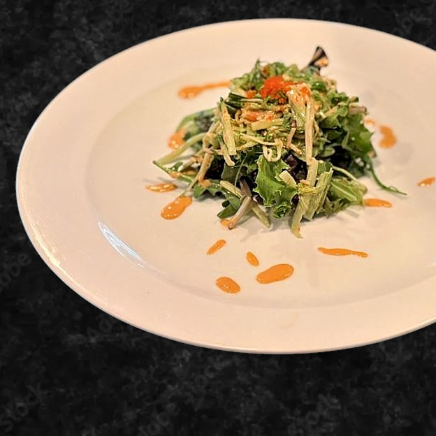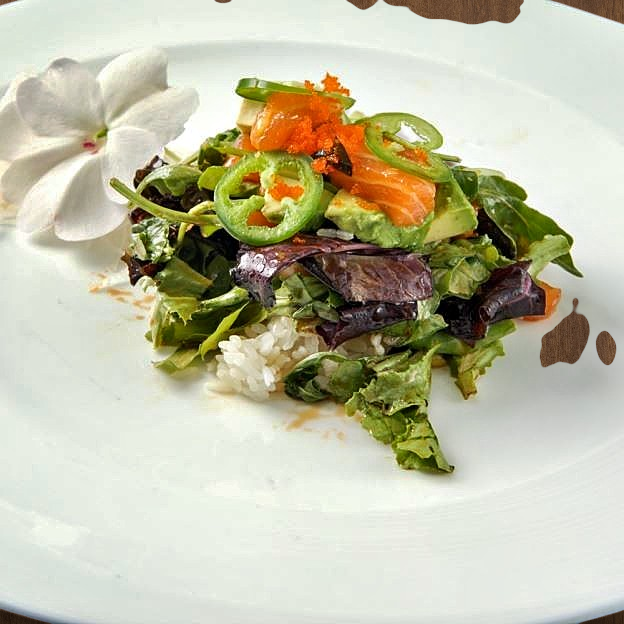 Sliced tuna, salmon, yellowtail, avocado, mixed greens & caviar with wasabi lemon dressing.