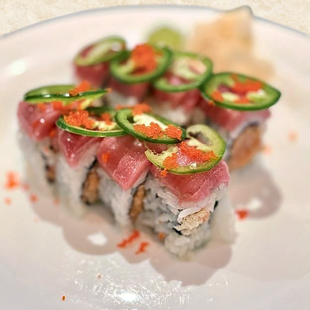 Diced tuna, avocado, cucumber, caviar and crunch with spicy mayo (Spicy)
