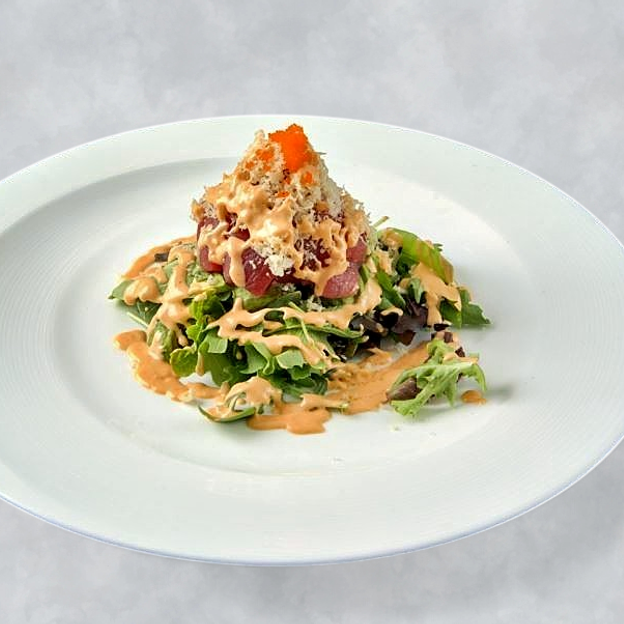 Tuna, Salmon, Avocado, Caviar & Mixed Greens with Wasabi Citrus Dressing.