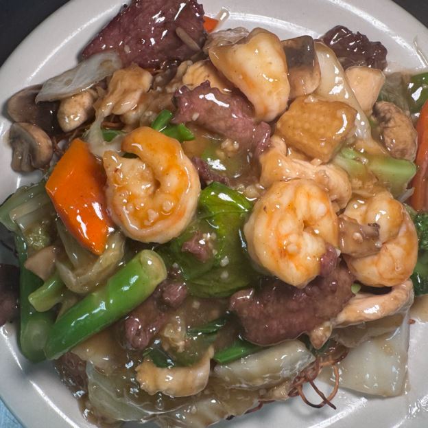 L20. Shrimp, Beef and Chicken in Mongolian Style Lunch Special