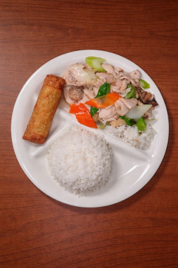 7 days a week 11:00am - 3:00pm. Served with choice of soup and an egg roll.