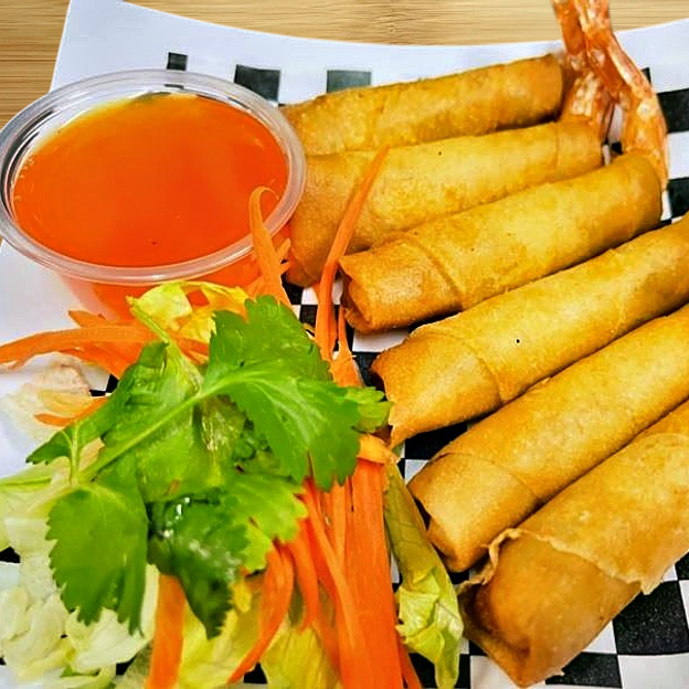 Filled with minced chicken, carrots, onion, cabbage, celery and glass noodles. Served with sweet & sour sauce!