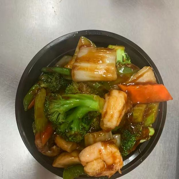 Shrimp, Scallop, Chicken, Beef, Roast Pork w. Broccoli and Baby corn , Green Peppers , Mushroom w. Garlic Sauce