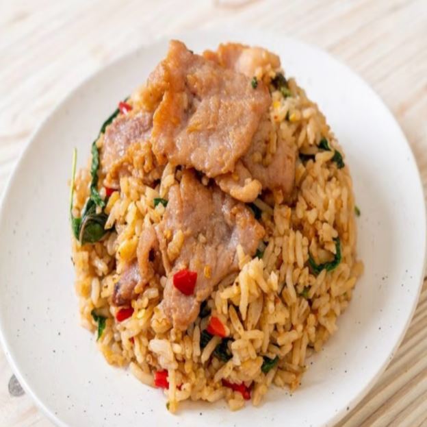 Grilled bbq pork stir fried with a sweet bbq sauce
