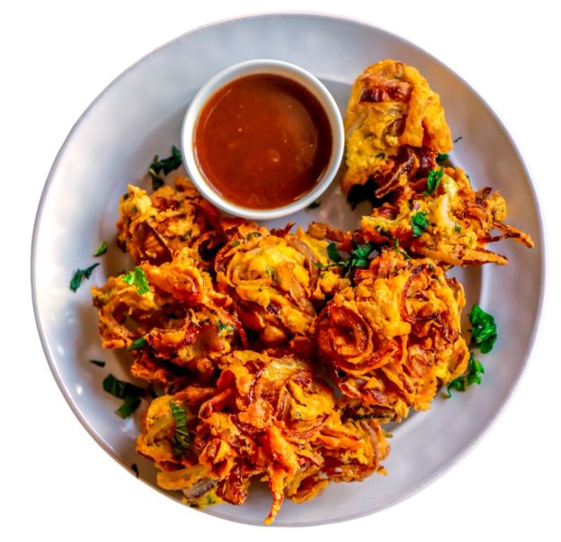 Crispy vegetable pakora recipe of chock-full of cabbage, onion and potatoes is flavored with a mixture of dried herbs and spices. Tamarind sauce on side.