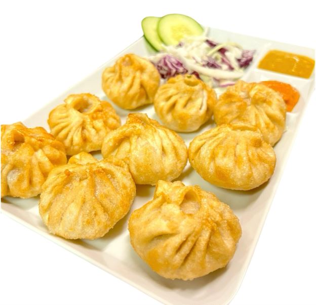 Steamed Chicken MoMo fried in deep fryer served with dipping sauce.