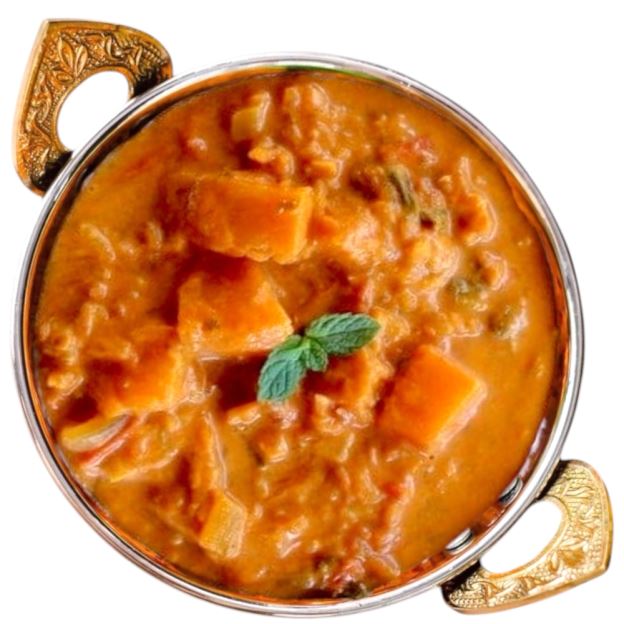 This mulligatawny soup is a hearty, flavorful blend of yellow Lentil soup with herbs and spices.