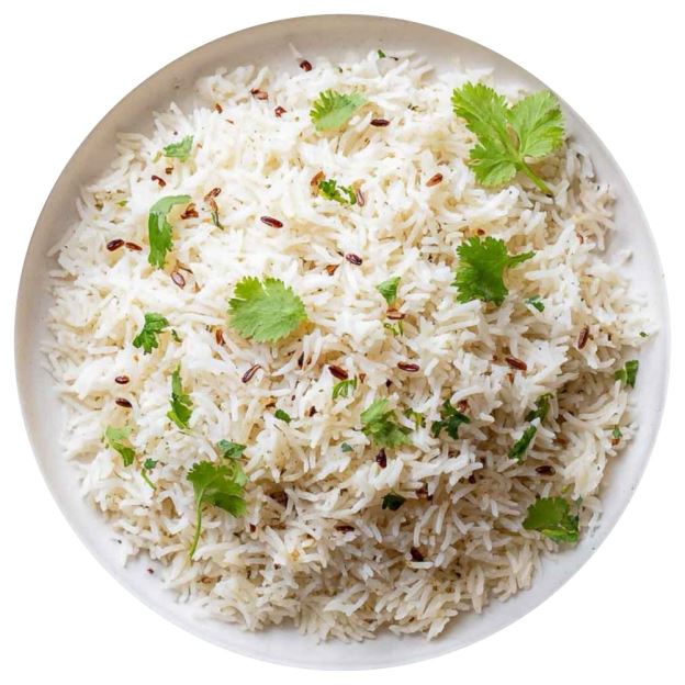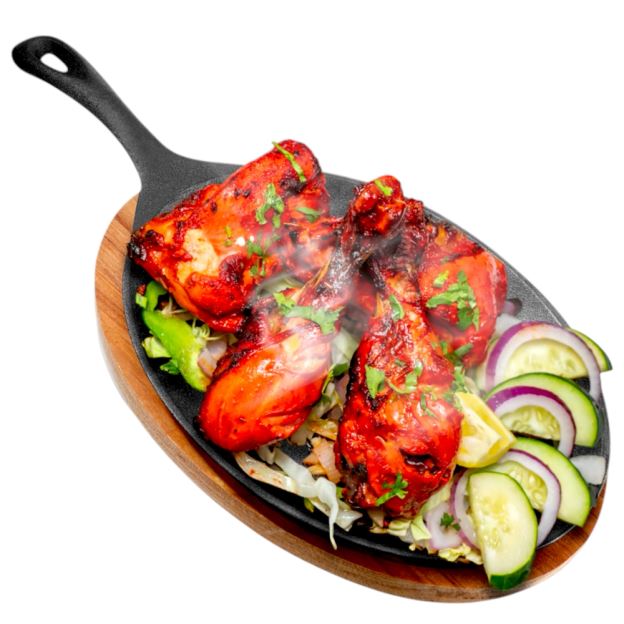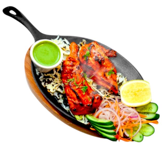 Chicken cubes with fried ajwain seed ginger and garlic.
